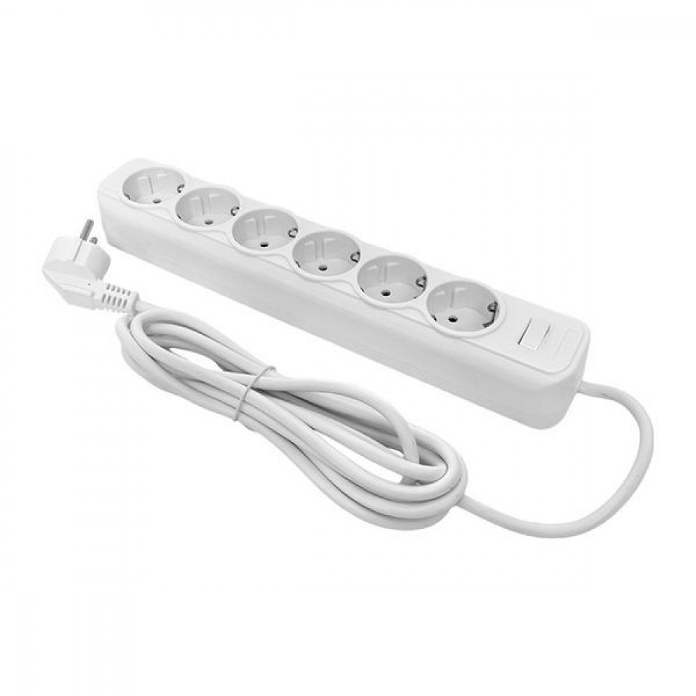 Описание Сетевой фильтр 6*5м 10А/2,2кВт с выкл. c/з ПВС 3х0,75 Блокбастер PROxima UFP10-375-6-05