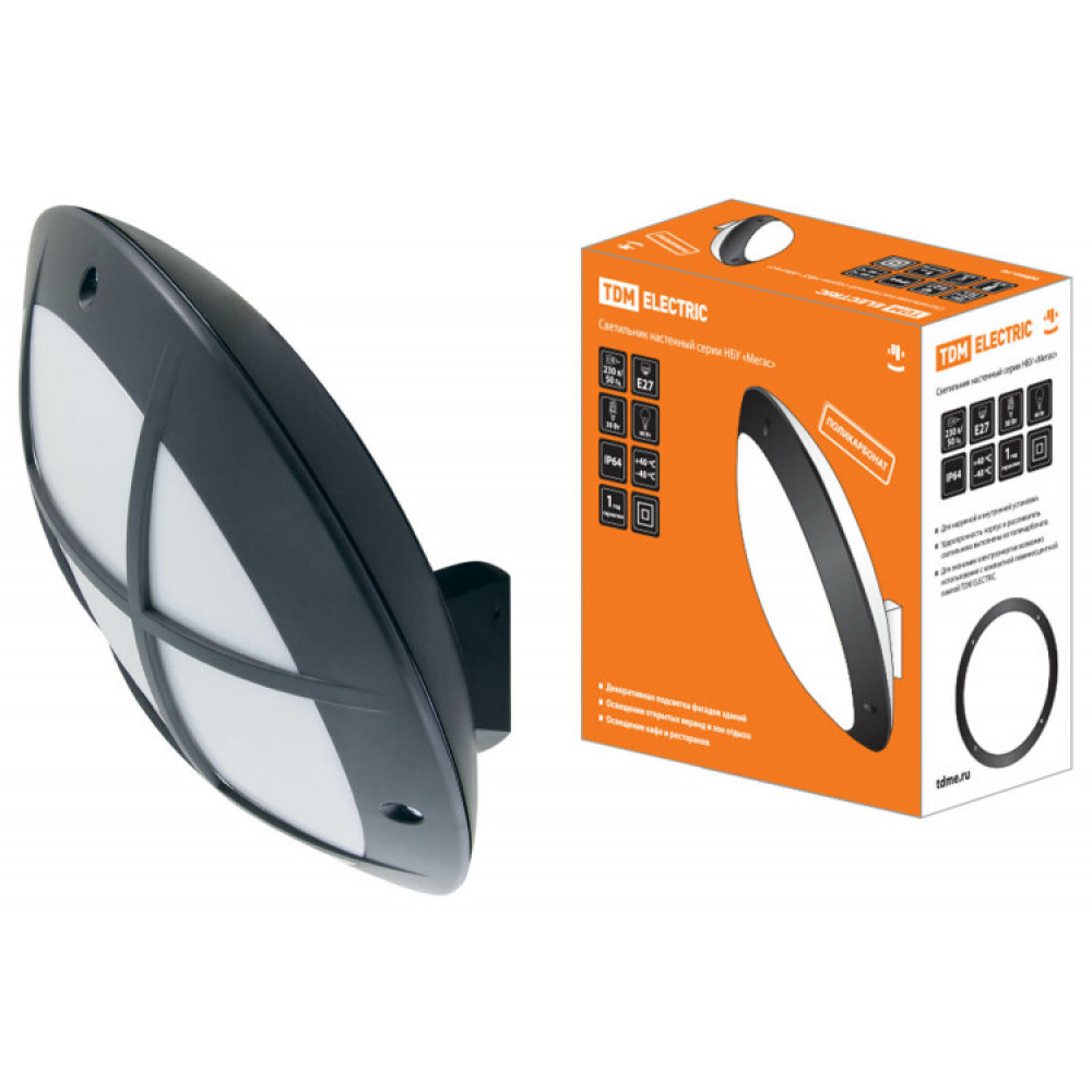 Описание Светильник НБУ 05-60-008 "Мегас 2" черный с решеткой IP64 SQ0328-0308