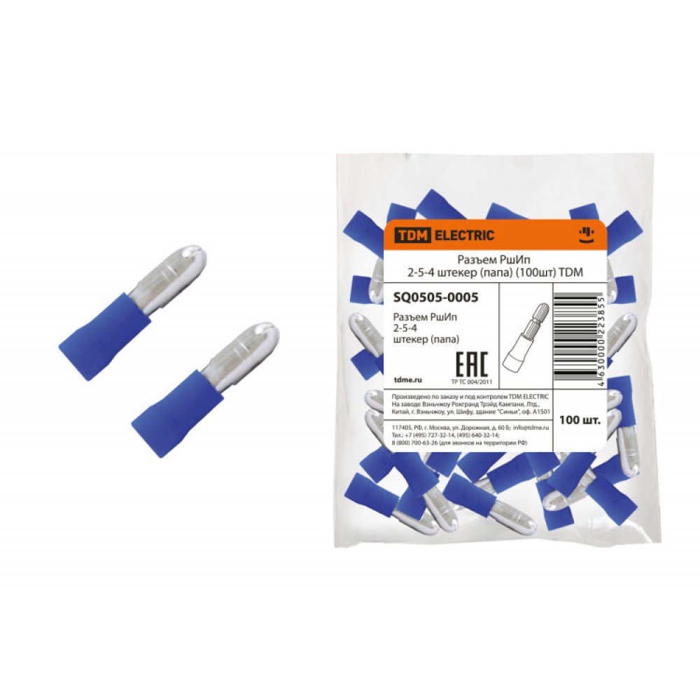 Разъем РшИп 2-5-4 штекер (папа) (100шт) SQ0505-0005, Наконечник, гильза