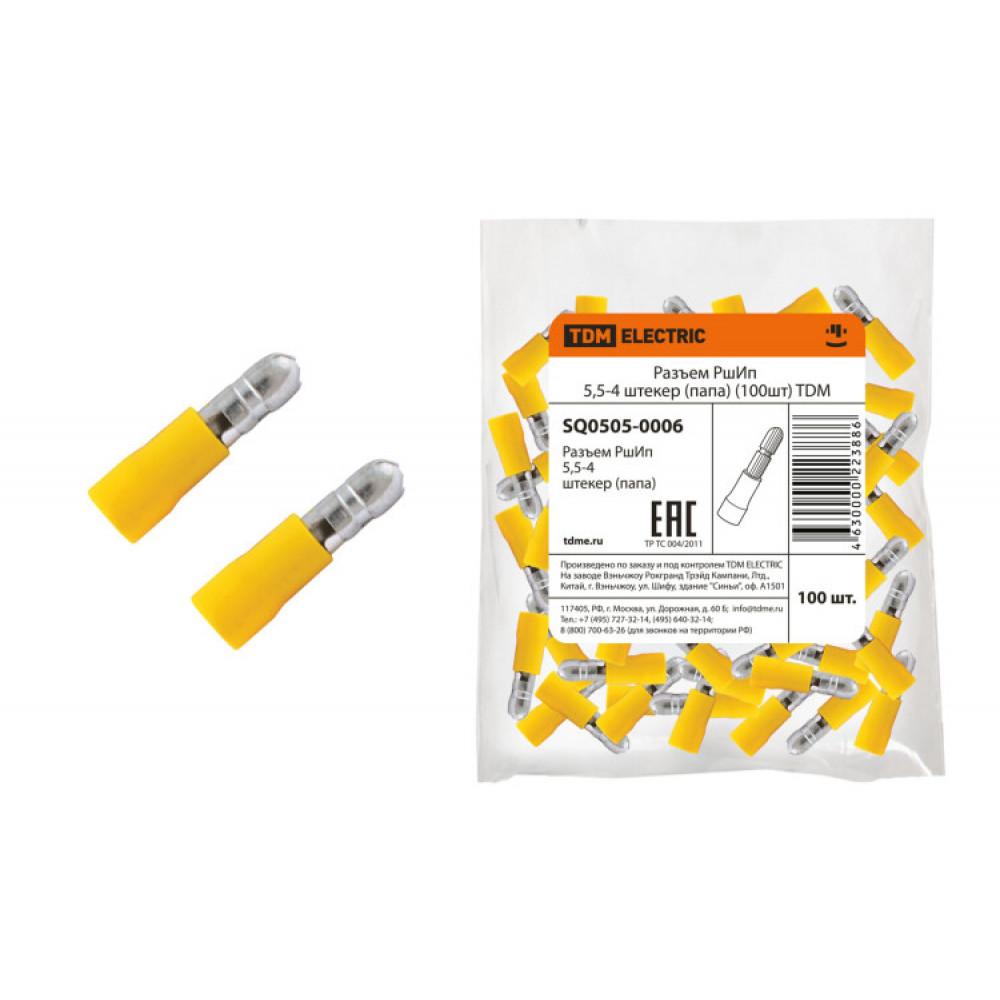 Разъем РшИп 5,5-4 штекер (папа) (100шт) SQ0505-0006, Наконечник, гильза