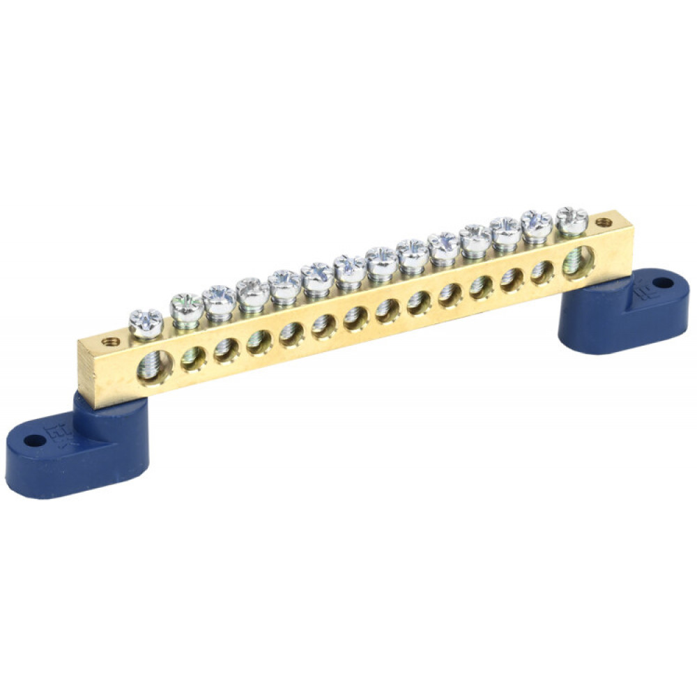 Применяются в щитовом оборудовании для подсоединения нулевых рабочих (N) и нулевых защитных проводов (РЕ). Крепление шины предусмотрено по центру (типы 8/1, 14/1) и по краям (типы 8/2 и 14/2) через изолятор нулевой шины на 35 мм монтажную DIN-рейку и через угловые изоляторы нулевой шины, а также непосредственно на панель щита. При подключении к шинам медных многожильных проводов рекомендуется оконцевание их наконечниками-гильзами. Выполнены из латуни.