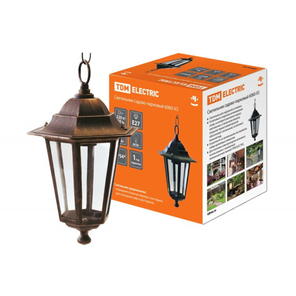 Светильник 6060-15 садово-парковый шестигранник, 60Вт, подвес, бронза SQ0330-0015