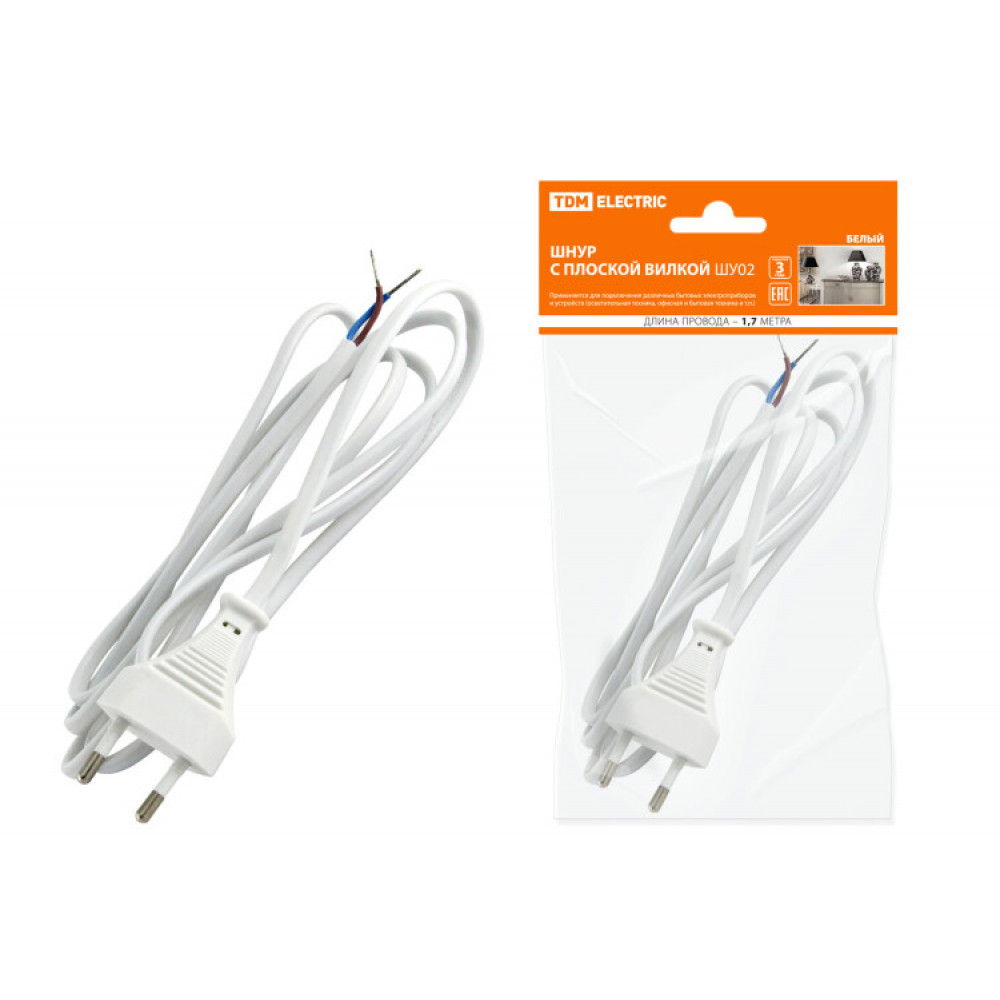 Описание Шнур с плоской вилкой ШУ02 ШВВП 2х0,75мм2 1,7 м. белый SQ1305-0011