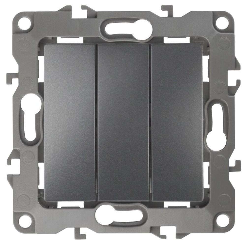 12-1107-12 Выключатель тройной, 10АХ-250В, IP20, 2, графит (10/100/2500) Б0019299, Выключатель и переключатель скрытого монтажа
