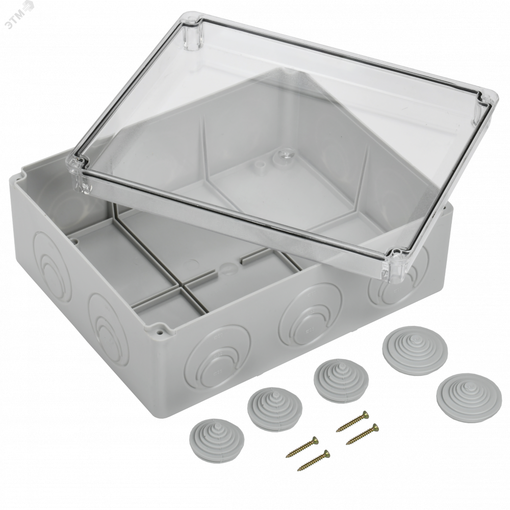 Описание Коробка расп. КМ41276 о/п 240х195х90мм прозр. кр. IP55 UKO10-240-195-090-K51-55