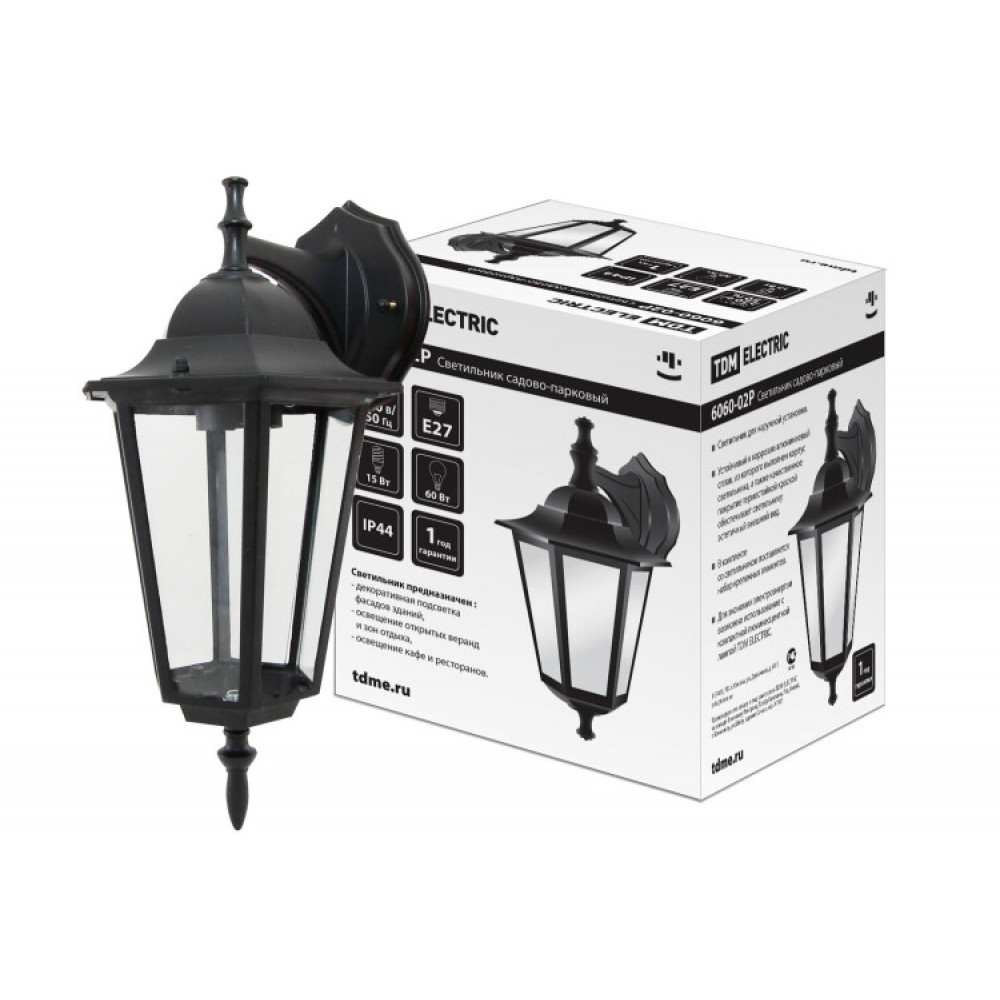Описание Светильник 6060-02Р садово-парковый шестигранник, 60 Вт, вниз, черный, в разборе, Ч/Б, нМ SQ0330-3002