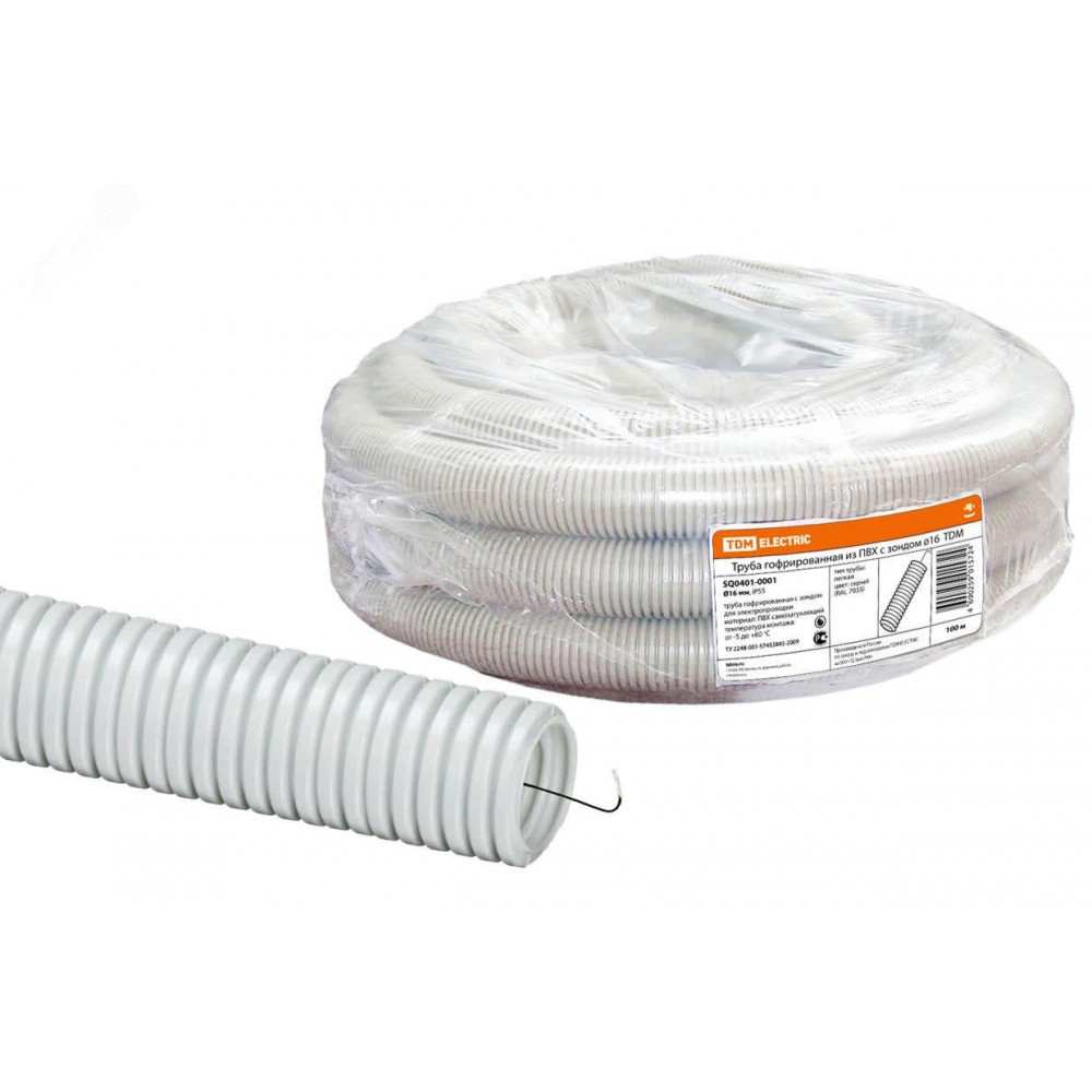 Труба гофрированная ПВХ d 16 с зондом (100 м) легкая SQ0401-0001, Труба и короб для прокладки кабеля