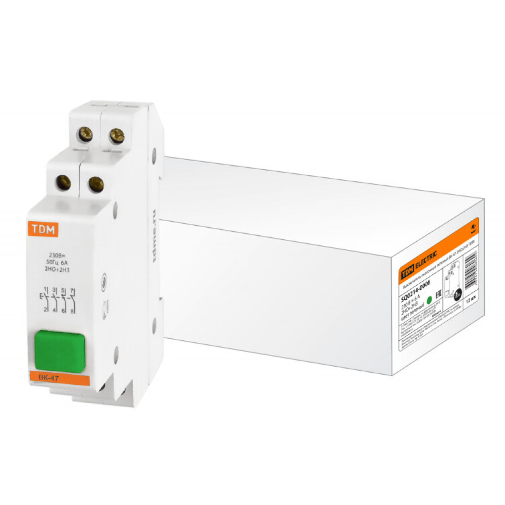 Описание Выключатель кнопочный зеленый ВК-47 2НО;2НЗ SQ0214-0006
