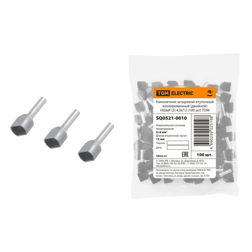Наконечник штыревой втулочный изолированный (двойной) НШвИ (2) 4,0х12 (100 шт) SQ0521-0010, Наконечник, гильза