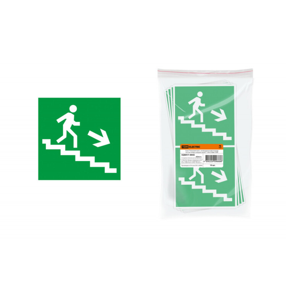 Описание Знак "Направление к эвакуационному выходу (по лестнице направо вниз)" 150х150мм SQ0817-0045