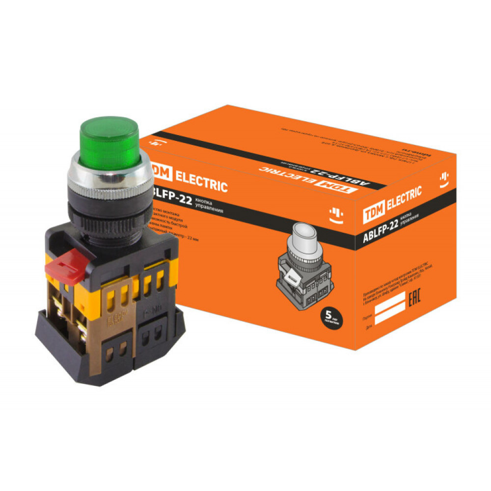 Кнопка ABLFP-22 зеленый d22мм неон/230В 1з+1р SQ0704-0006, Кнопка