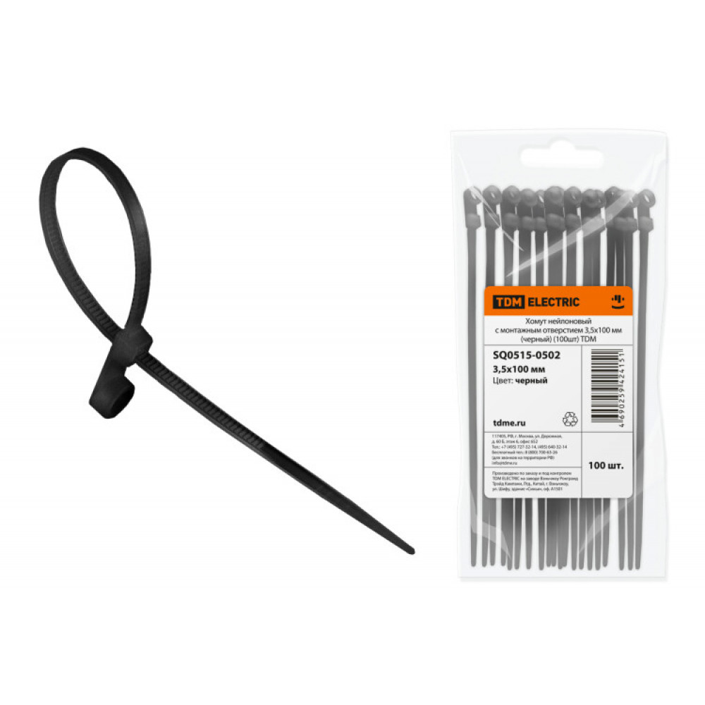 Описание Хомут нейлоновый с монтажным отверстием 3,5х100 мм (черный) (100шт) SQ0515-0502