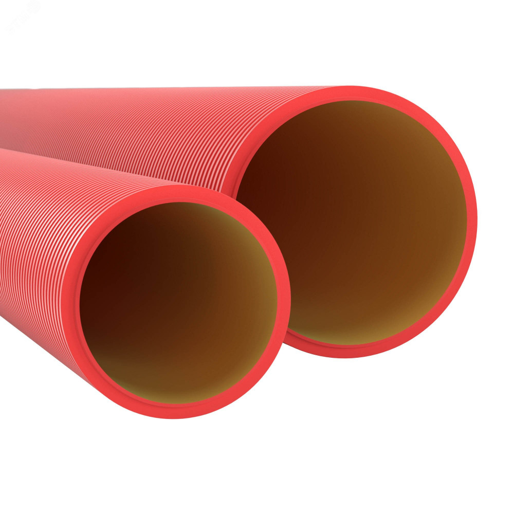 Описание Двустенная труба ПНД жесткая для кабельной канализации д.110мм, SN12, 1030Н, 5,70м, цвет красный 16091157