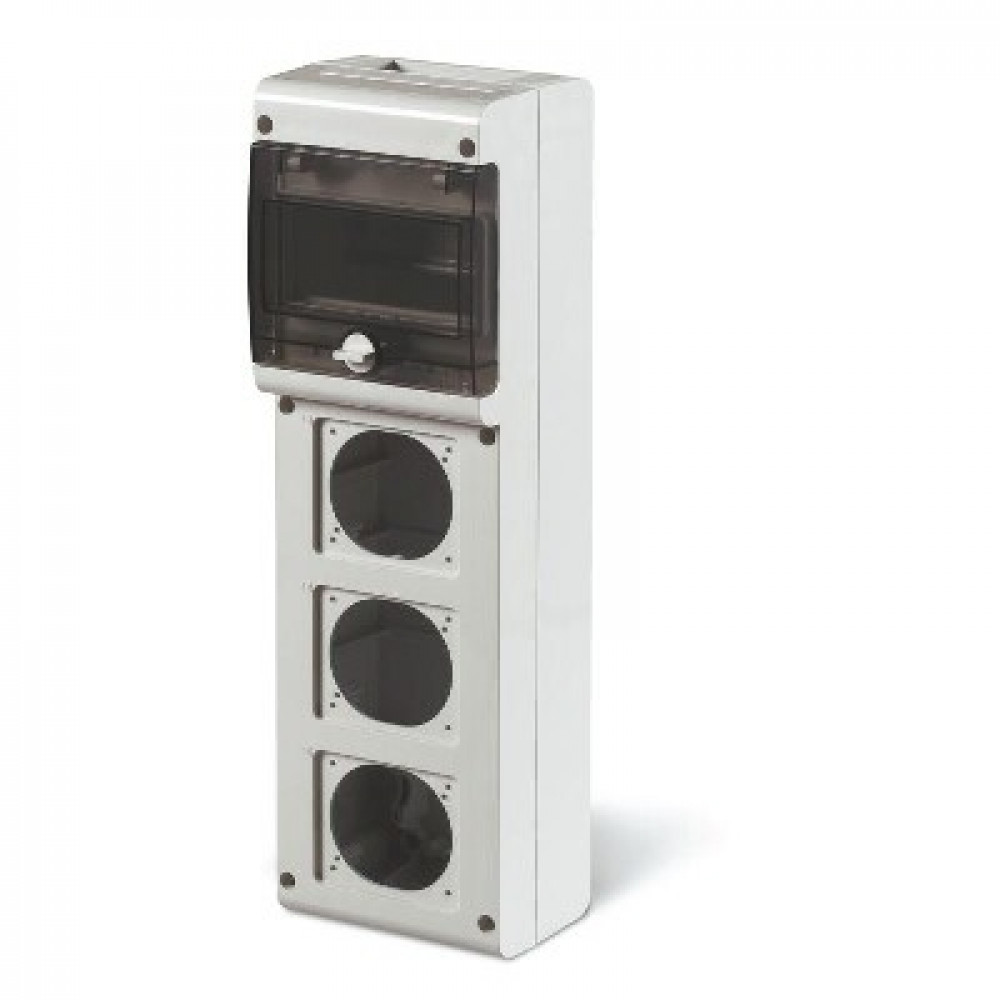 Корпус на 6 модулей и 3 поста с основанием 70х87 мм. DIS6323500, Разъем силовой и модуль комбинируемый