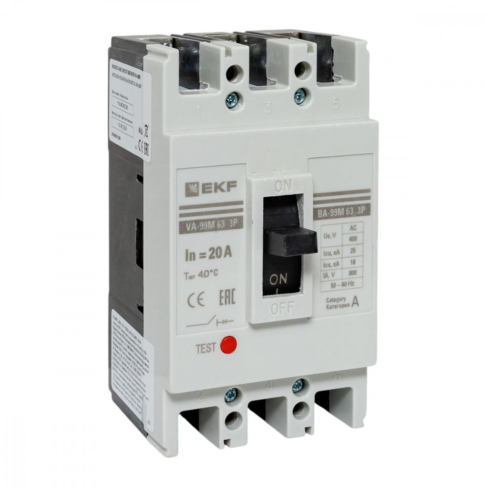 Выключатель автоматический 3п 63/20А 25кА ВА-99М PROxima mccb99-63-20m, Выключатель автоматический силовой