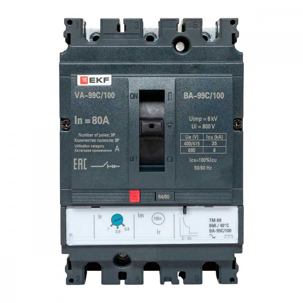 Описание Выключатель автоматический 3п 100/80А 36кА ВА-99C Compact NS PROxima mccb99C-100-80