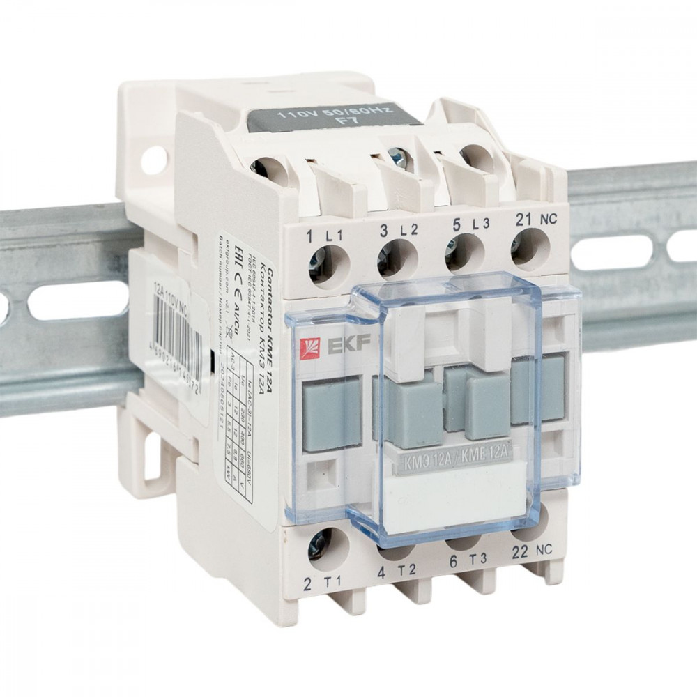 Контакторы КМЭ EKF PROxima состоят из корпуса, закрепленных в нем неподвижных контактов, подвижных контактов, которые закреплены в подвижной части магнитной системы. Неподвижная часть магнитной системы закреплена жестко в корпусе КМЭ. Пружина препятствует смыканию контактов. При подаче напряжения на катушку управления в магнитной системе контактора возникает магнитное поле, которое, преодолевая сопротивление пружины, смыкает магнитную систему и замыкает контакты. При отключении напряжения с катушки управления пружина размыкает контакты. Возможна коммутация алюминиевыми медным проводом.