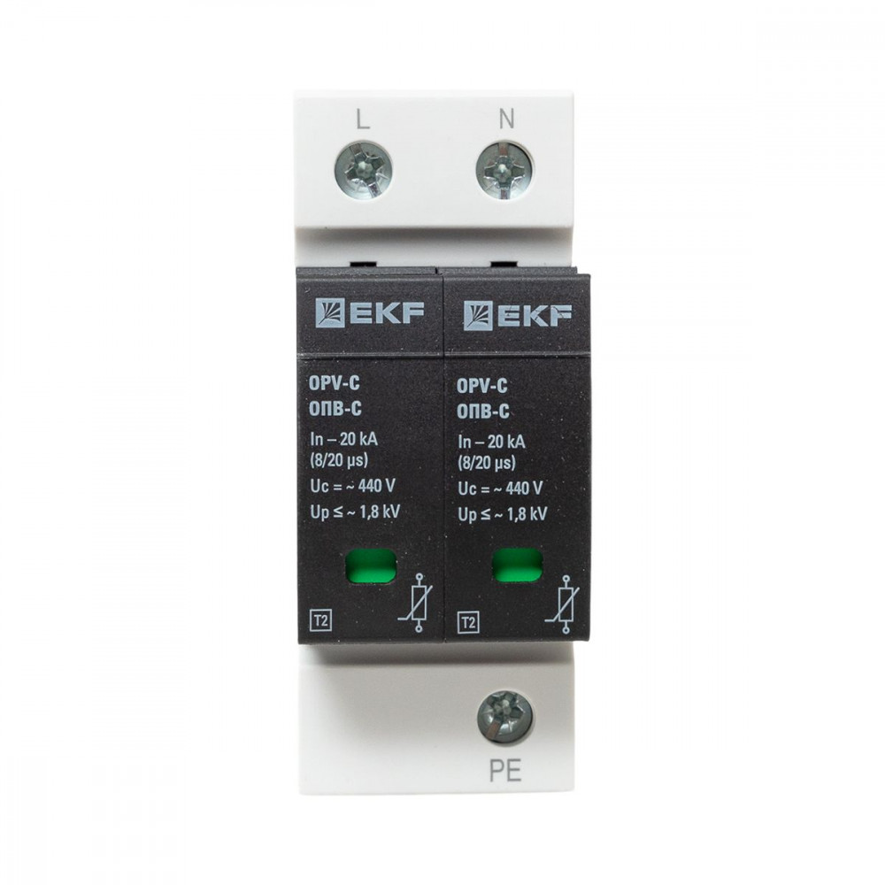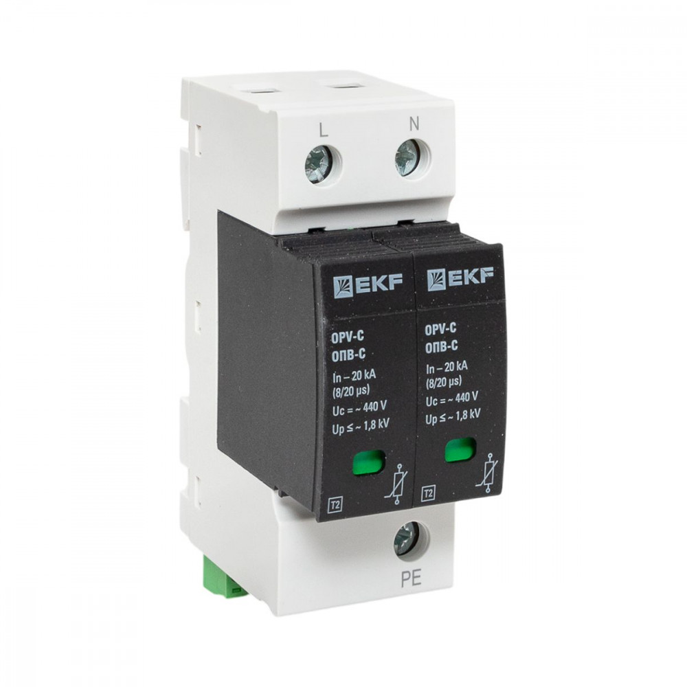 Ограничитель импульсных напряжений ОПВ-C/2P In 20кА 385В с сигн. PROxima opv-c2, Ограничитель имп перенапряжения