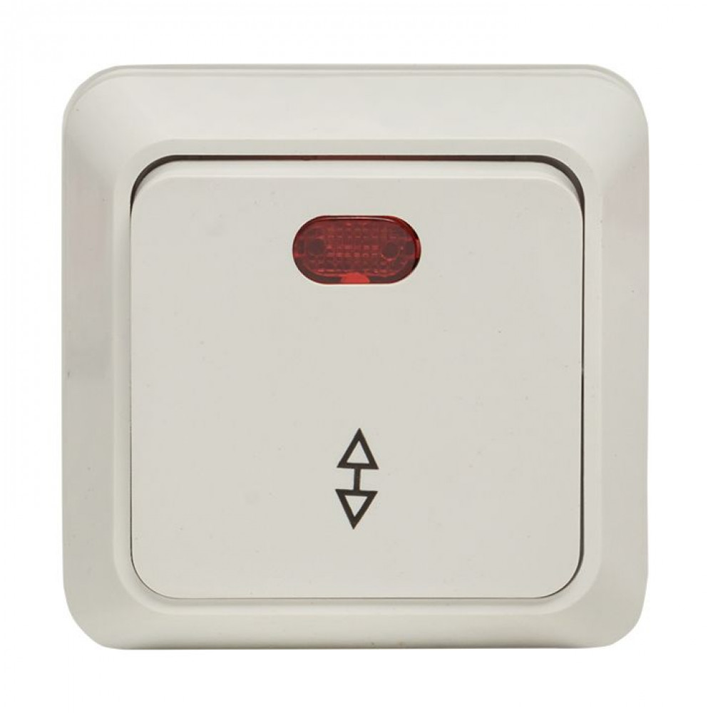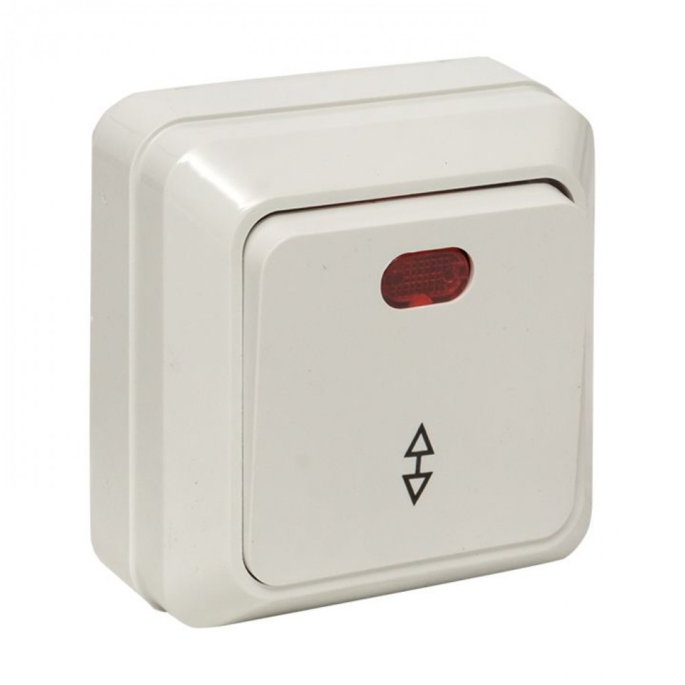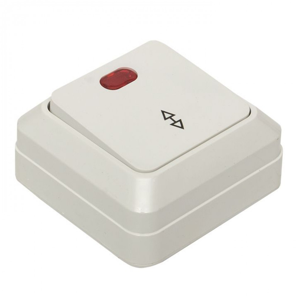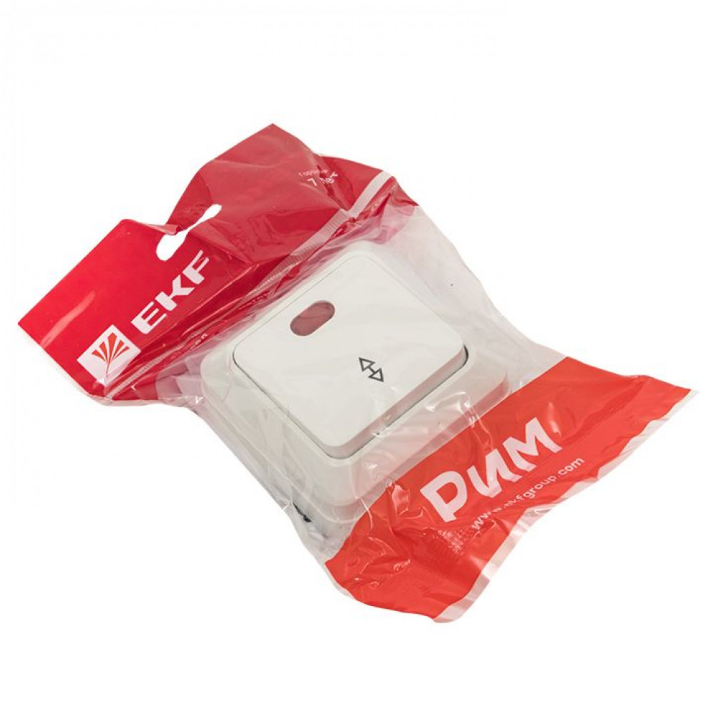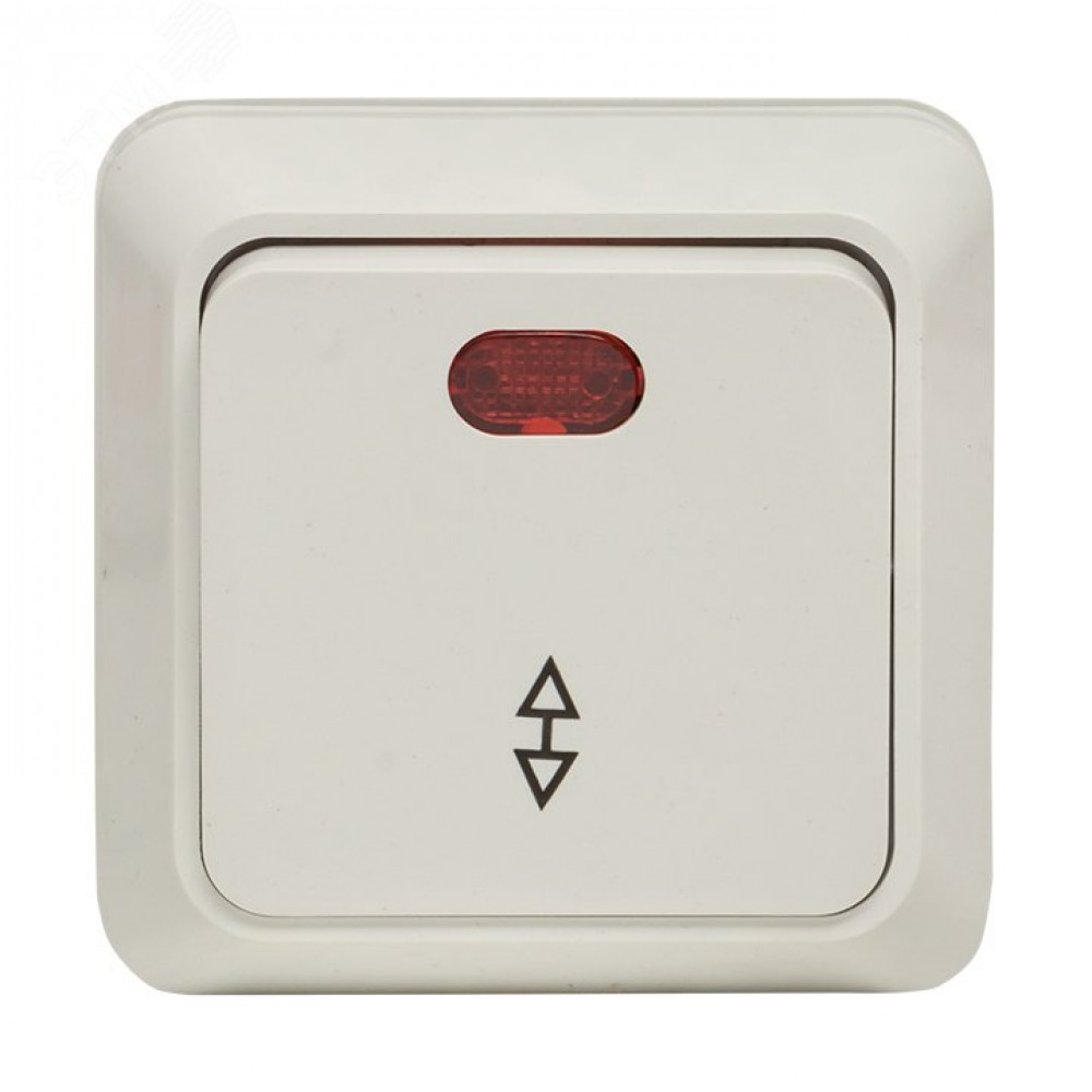 Рим Выключатель проходной 1-клавишный с индикатором 10А белый ENV10-125-10, Выключатель и переключатель открытого монтажа