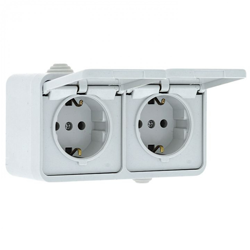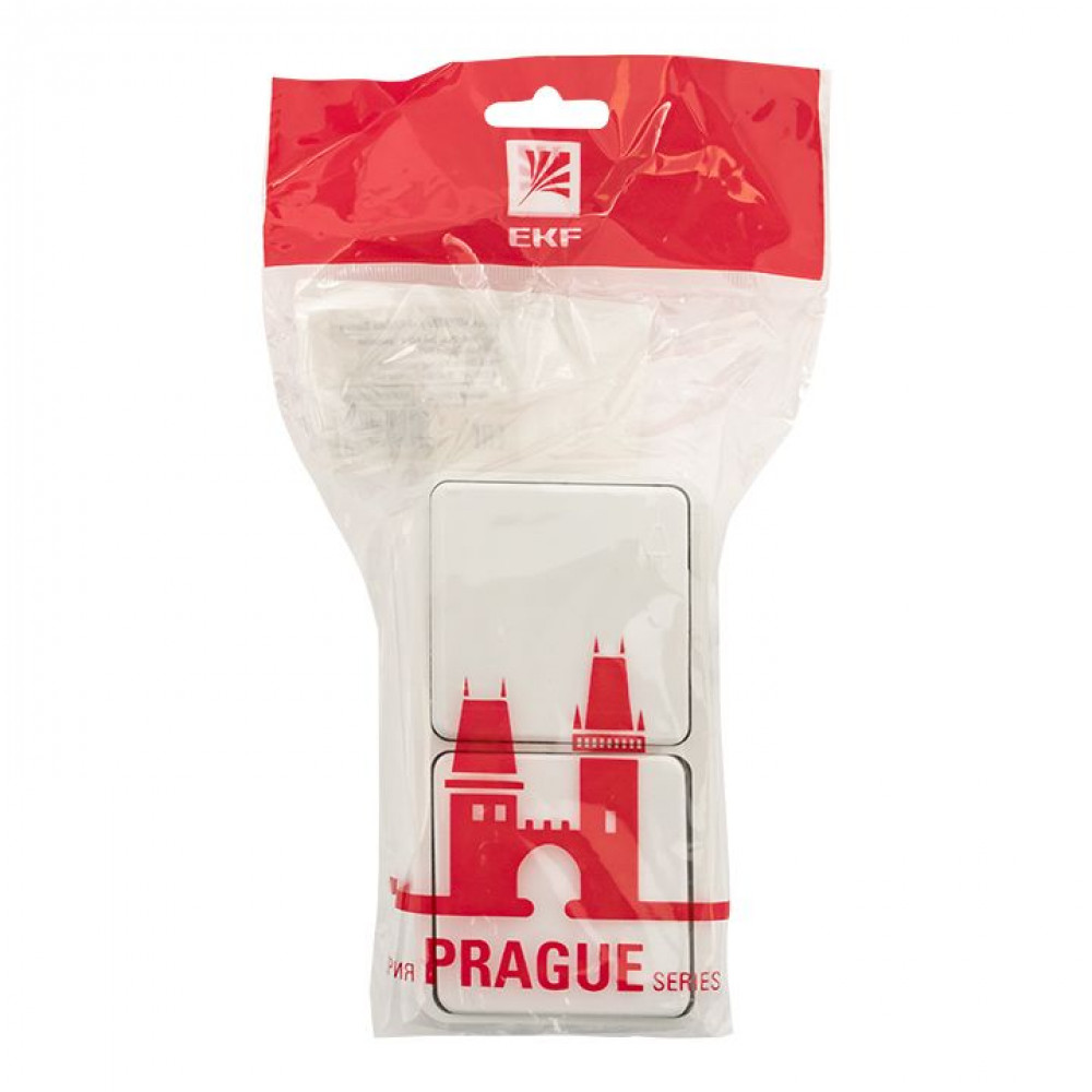 Блок розетка-розетка 16А с/з с крышкой IP44 белая Прага PROxima EKRR16-050-10-440, Розетка скрытого монтажа