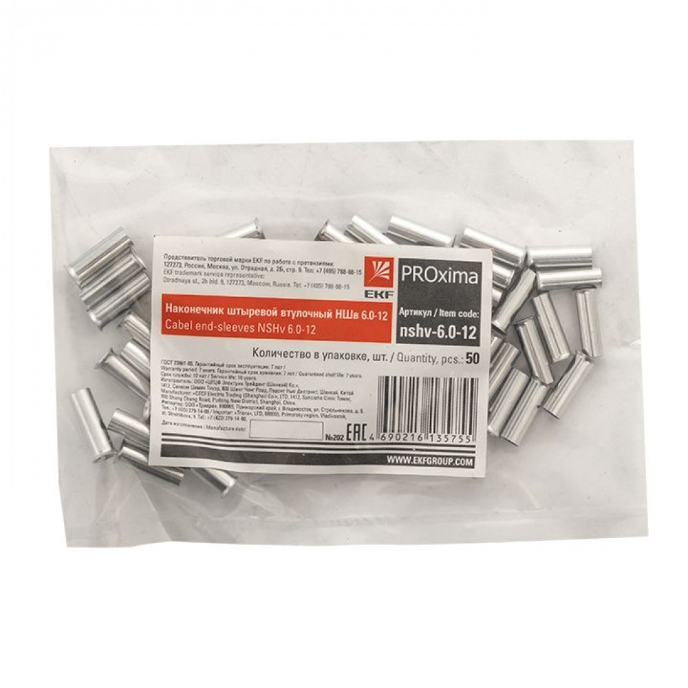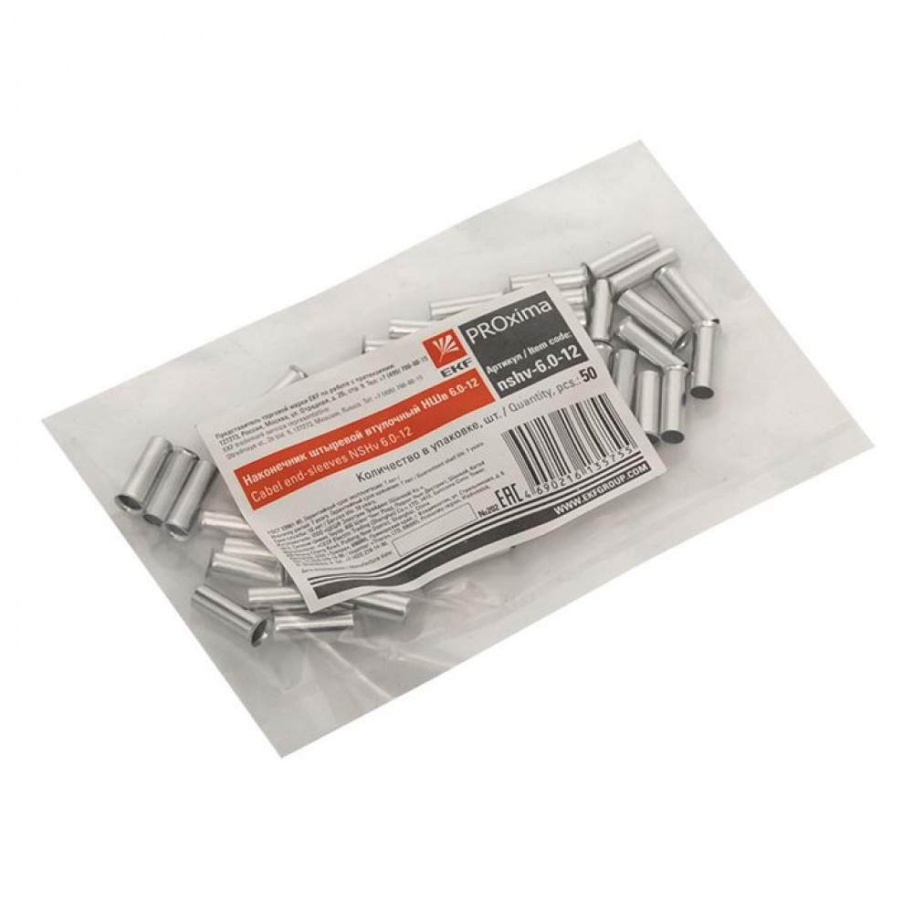 Наконечник штыревой втулочный НШв 6.0-12 (уп50шт) PROxima nshv-6.0-12, Наконечник, гильза