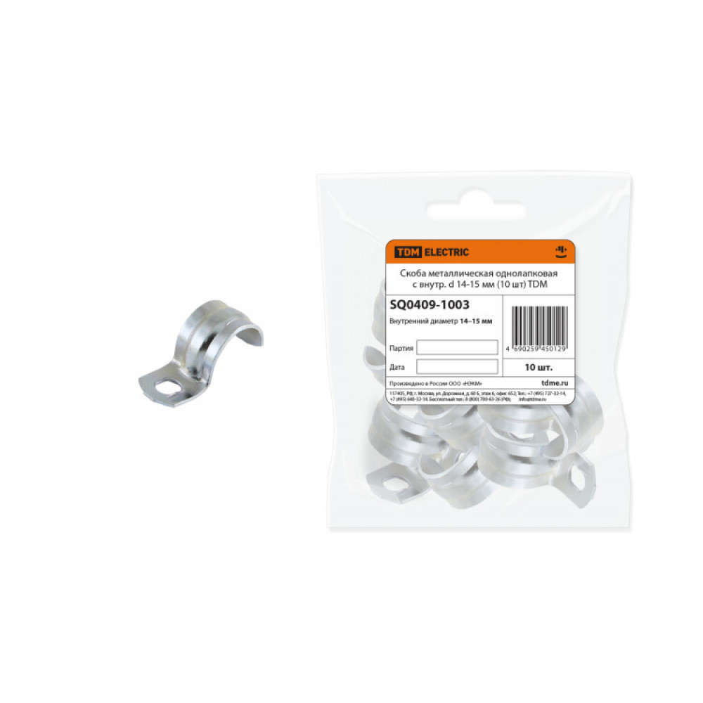 Описание Скоба металлическая однолапковая с внутр. d 14-15 мм (10 шт) SQ0409-1003