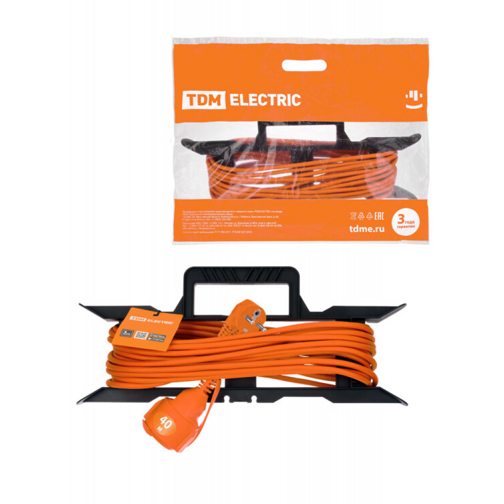 Удлинитель-шнур силовой на рамке УШз16 (штепс. гнездо, 40м ПВС 3х1,0) SQ1302-0334, Удлинитель, сетевой фильтр
