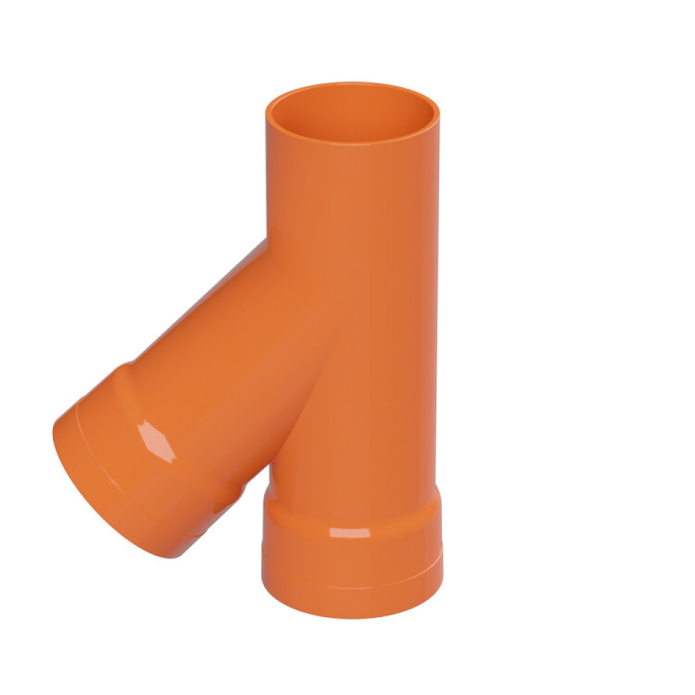 Описание Тройник для двустенных труб, 45 град., полипропилен, д.110мм 019110