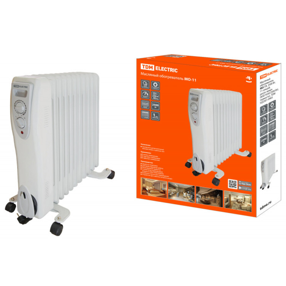 Описание Масляный обогреватель МО-11, 2500 Вт, 11 секций, регул. мощн. (850/1650/2500 Вт), термостат, SQ2501-0903