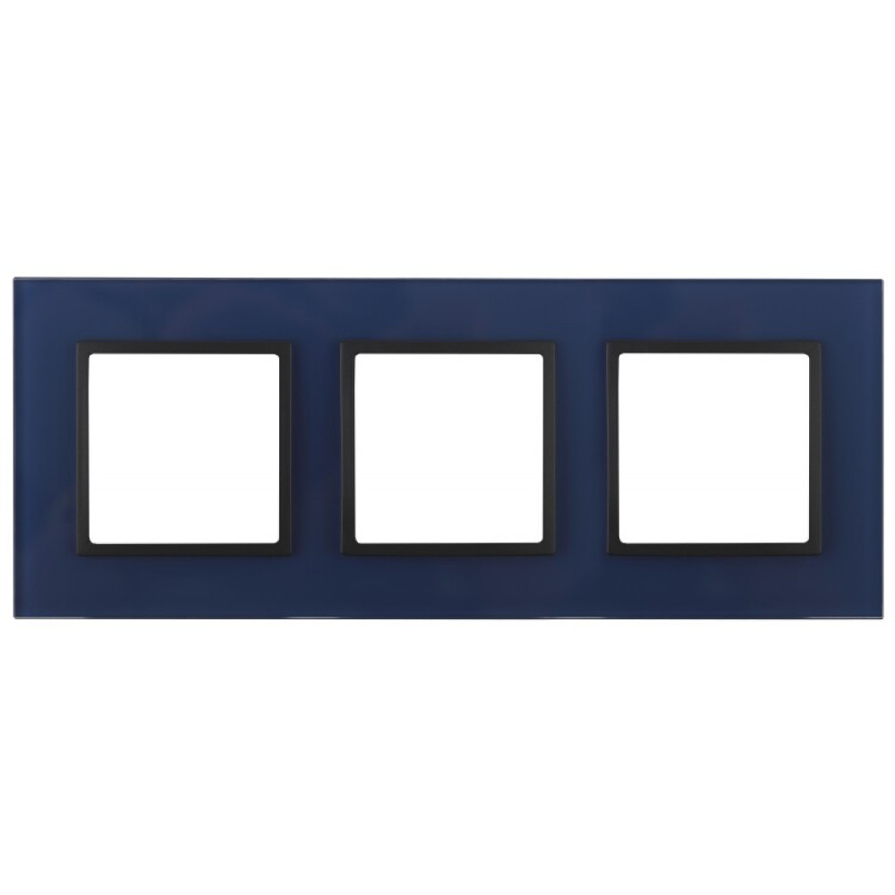14-5103-29 Рамка на 3 поста, стекло, Elegance, синий+антр (5/25/900) Б0034519, Аксессуар для скрытого монтажа