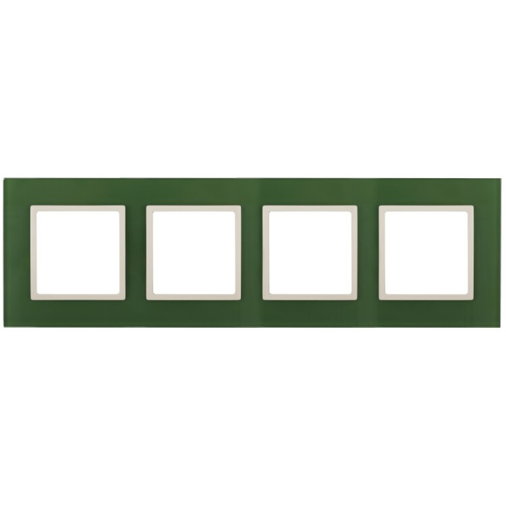 Описание 14-5104-27 Рамка на 4 поста, стекло, Elegance, зелёный+сл.кость (5/25/900) Б0034535