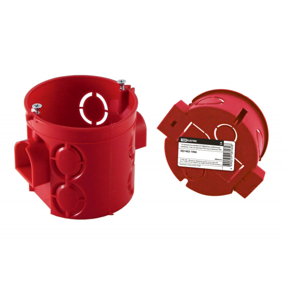 Установочная коробка СП D68х62мм, углубленная, саморезы, стык. уз, красная, IP20, инд. штрихкод SQ1402-1906, Коробка распределительная