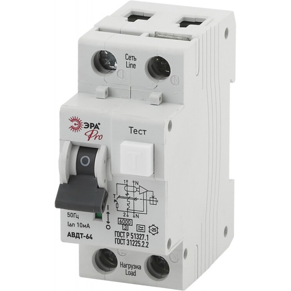Автоматический выключатель дифференциального тока PRO NO-902-13 АВДТ 64 B25 10мА 1P+N тип A Б0031863, Дифференциальная защита: УЗО, дифф блок