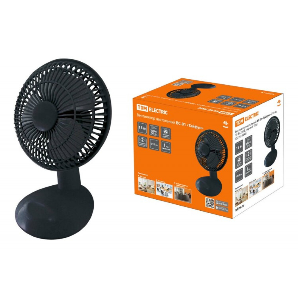 Вентилятор настольный ВС-01 "Тайфун" D15 см, 15 Вт, 230 В, черный, SQ2701-0003, Система вентиляционная