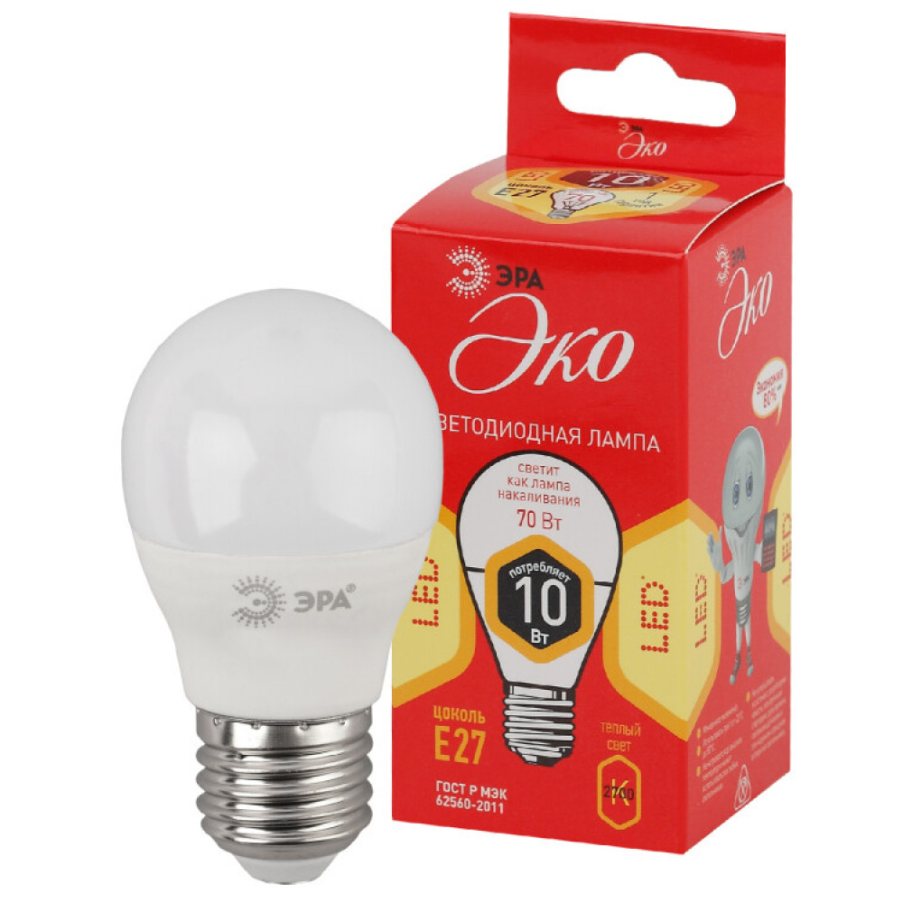 Лампочка светодиодная RED LINE ECO LED P45-10W-827-E27 E27 / Е27 10Вт шар теплый белый свет Б0032970, Лампа светодиодная