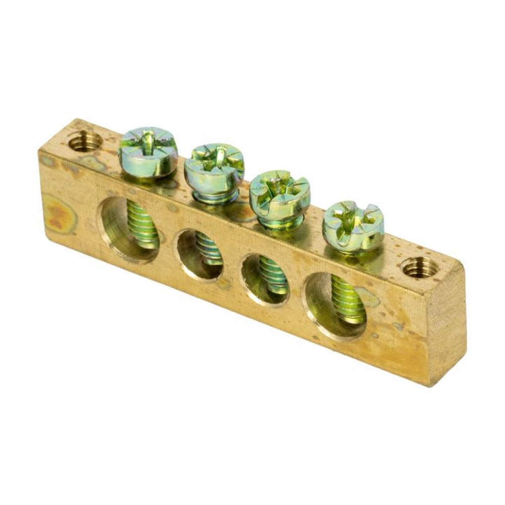 Шина PEN "ноль-земля" (6х9мм) 4 отверстия латунь крепеж по центру розничный стикер PROxima sn0-63-04-r →