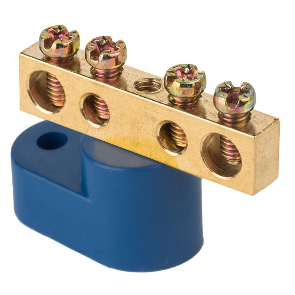 Описание Шина "0" N (6х9мм) 4 отверстия латунь синий угловой изолятор PROxima sn0-63-04-1