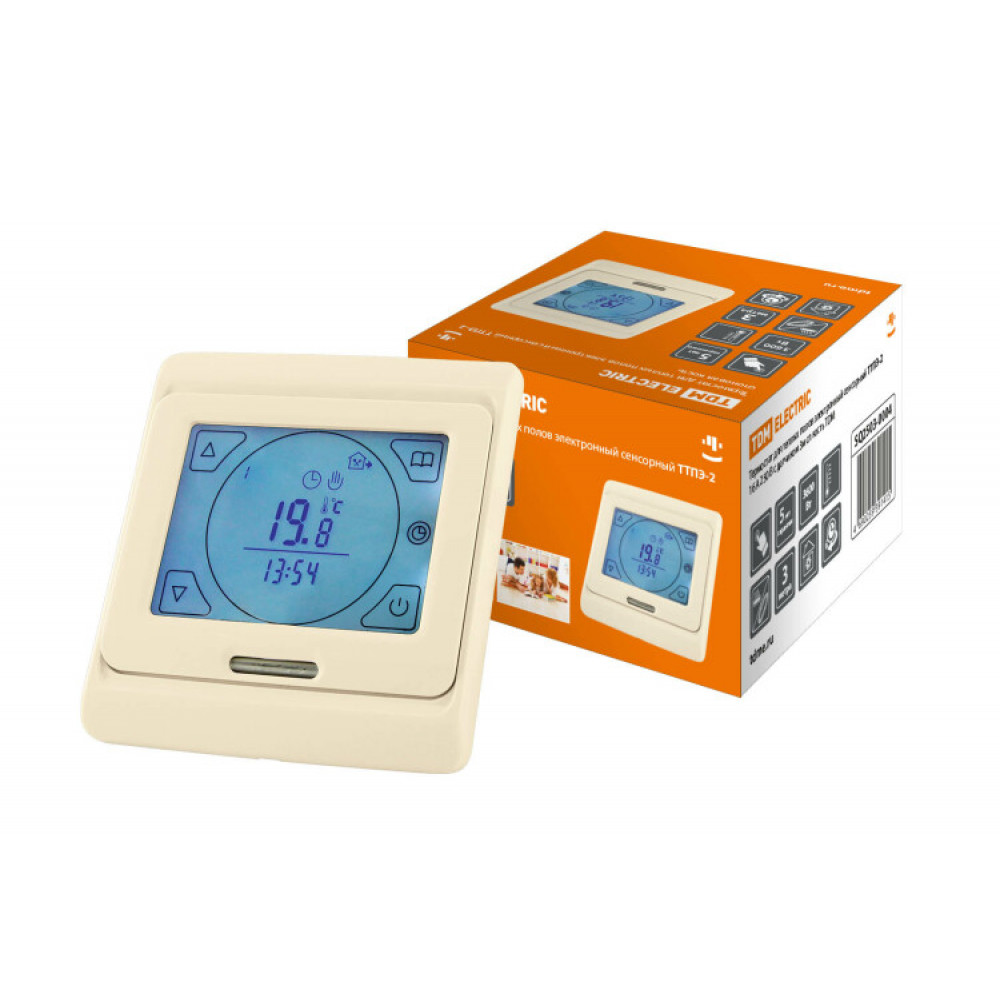 Доставка Термостат для теплых полов электронный сенсорный ТТПЭ-2 16А 250В с датчиком 3м сл кость SQ2503-0004