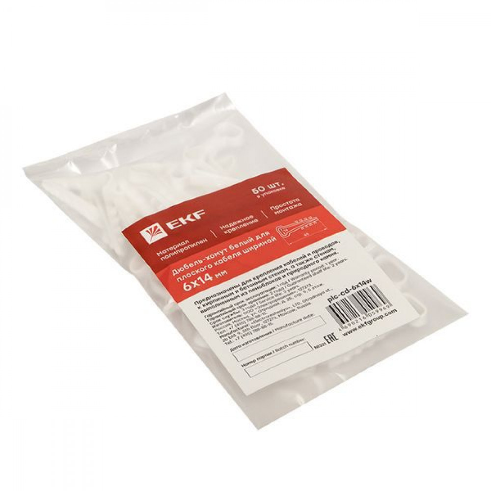 Доставка Дюбель-хомут (6х14 мм) для плоского кабеля белый (100 шт.) PROxima plc-cd1-6x14w