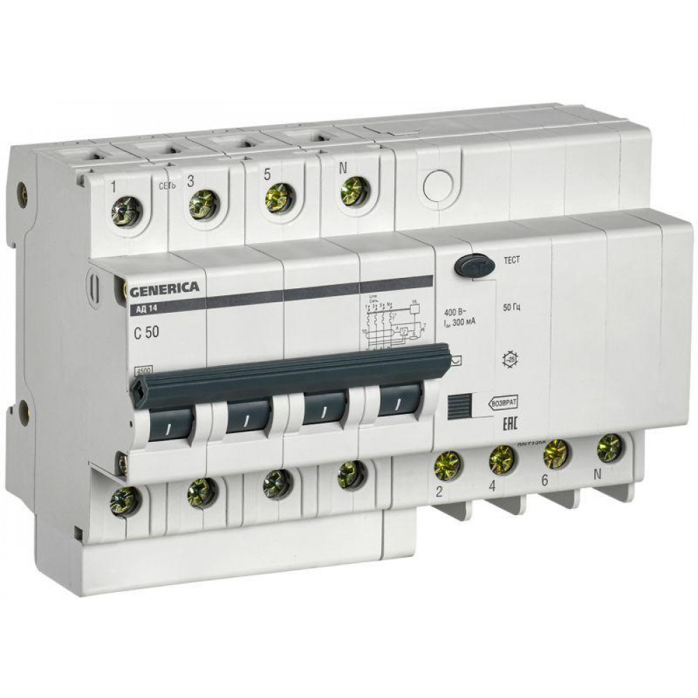 Диф. автомат АД14 4Р 50А 300мА MAD15-4-050-C-300, Дифференциальная защита: УЗО, дифф блок