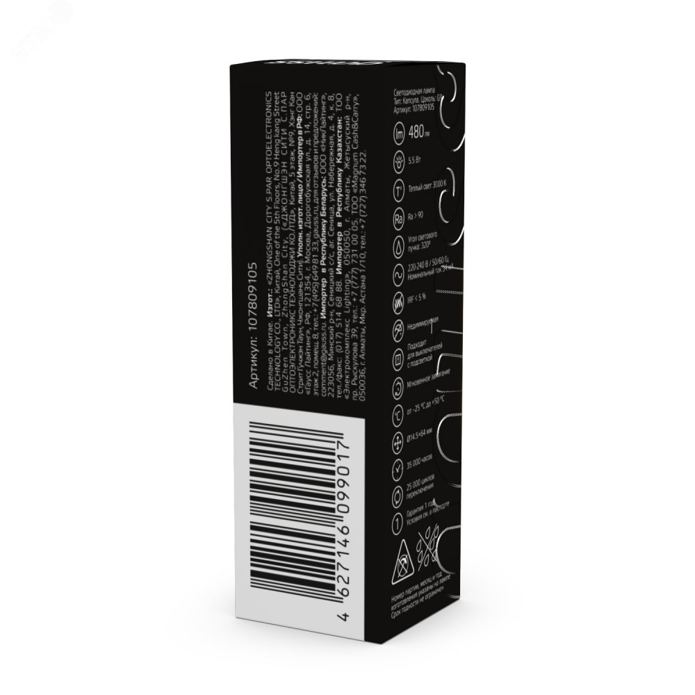Описание Лампа LED G9 AC220-240V 5.5W 3000K Glass 1/10/200 107809105