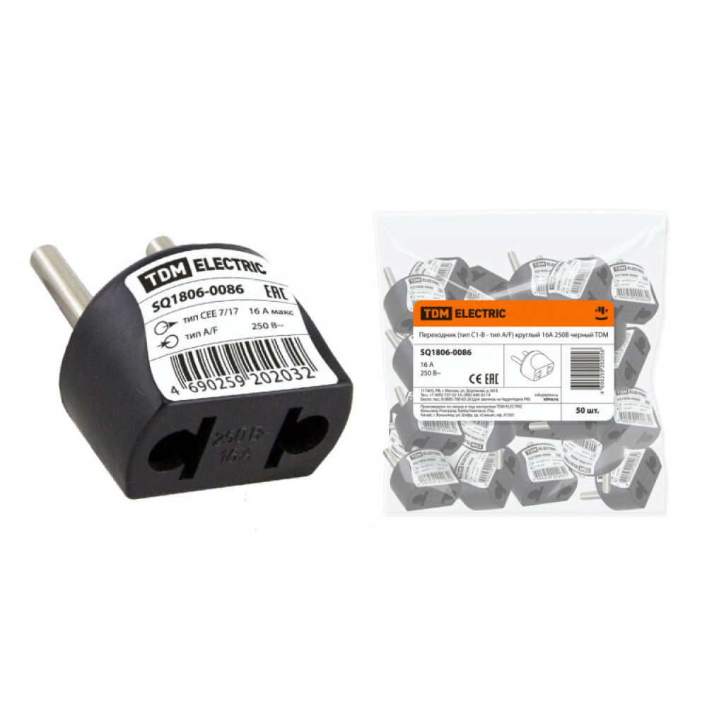 Доставка Переходник (тип С1-В - тип A/F) круглый 16A 250В черный SQ1806-0086