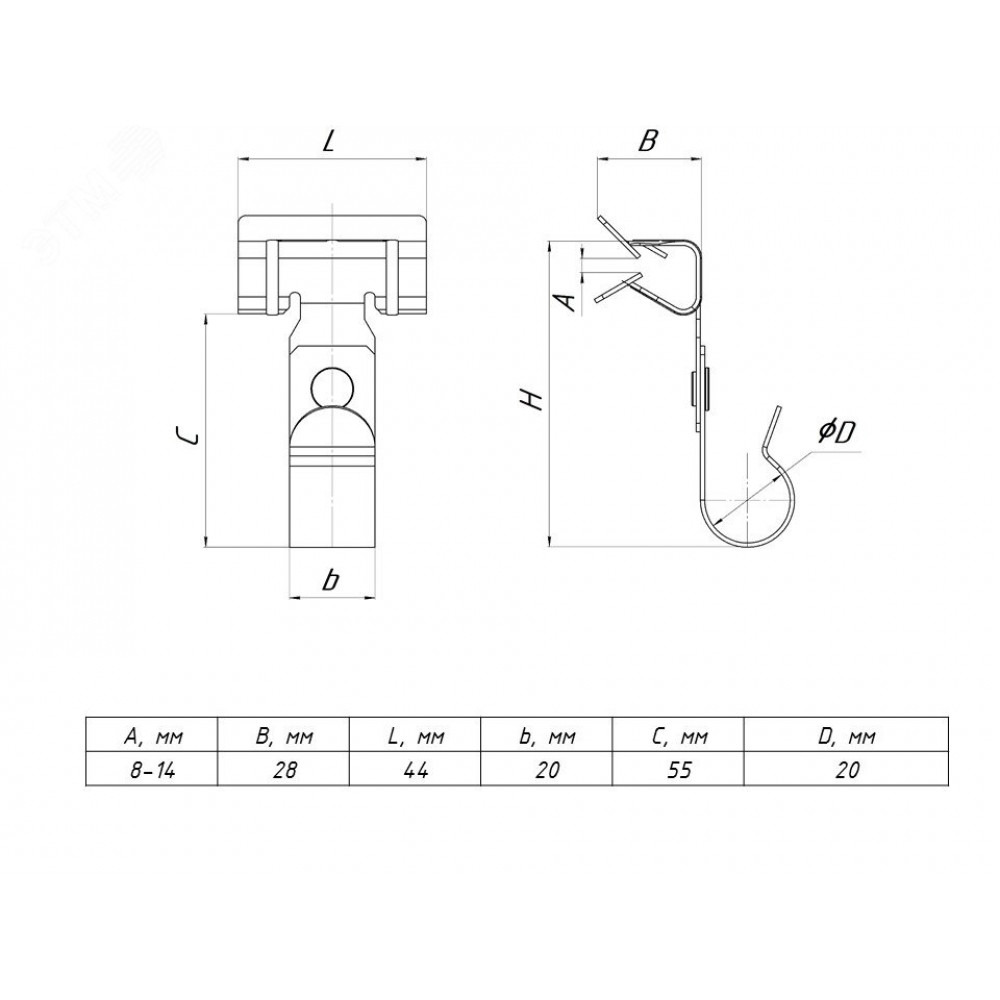 Зажим балочный 8-14 мм под трубу 20 мм PROxima ZB8-14-Tr20, Аксессуар к кабеленесущей системе