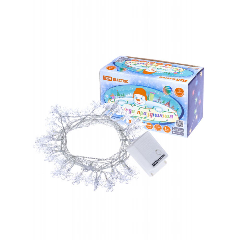 Гирлянда светодиодная "Снежинки" 50LED, 5м, 8 режимов, многоцвет., прозр. шнур, 250 В, SQ0361-0047, Светильник декоративный