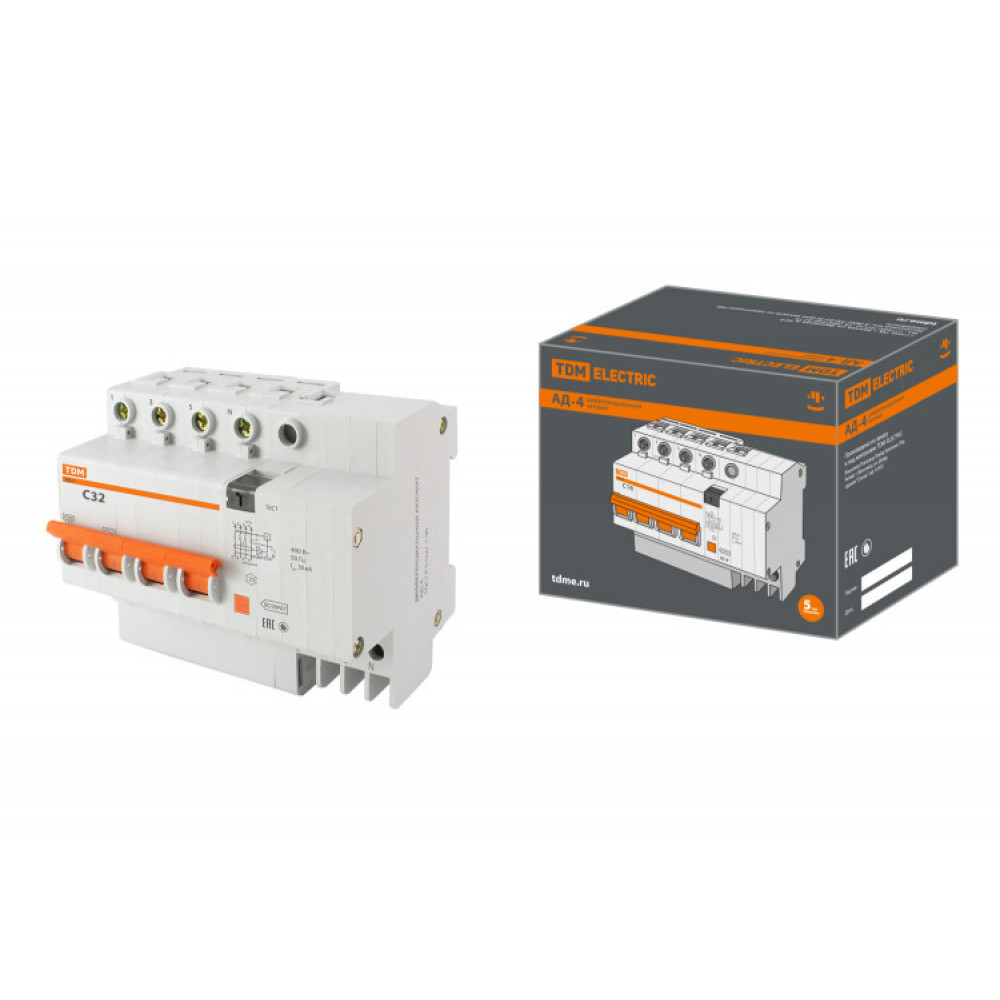 Доставка Диф.автомат АД-4 4Р, C32, 30мА, 4,5кА, тип АС, SQ0221-0008