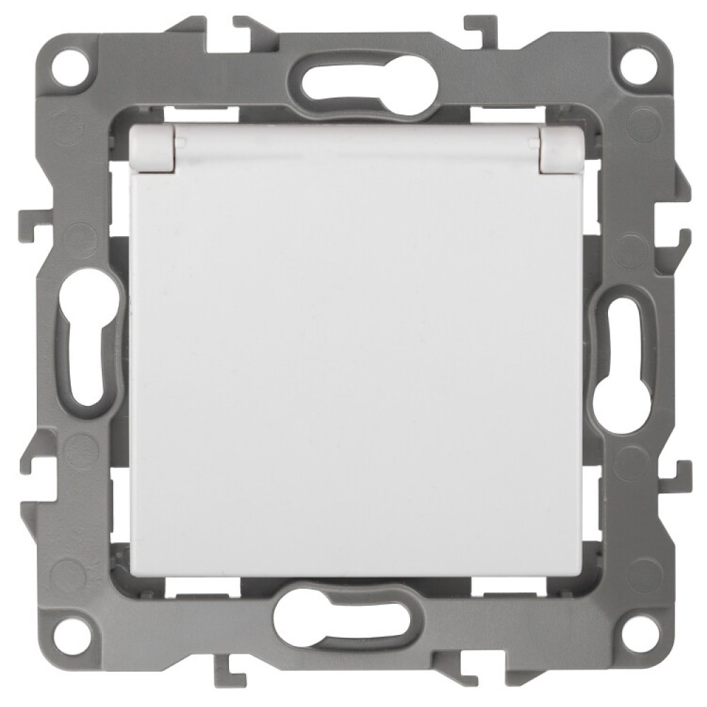 Доставка 12-2003-01 Розетка 2P+E Schuko со шторками с крышкой, 16А-250В, б.л., 2, белый (10/100/1800) Б0038806