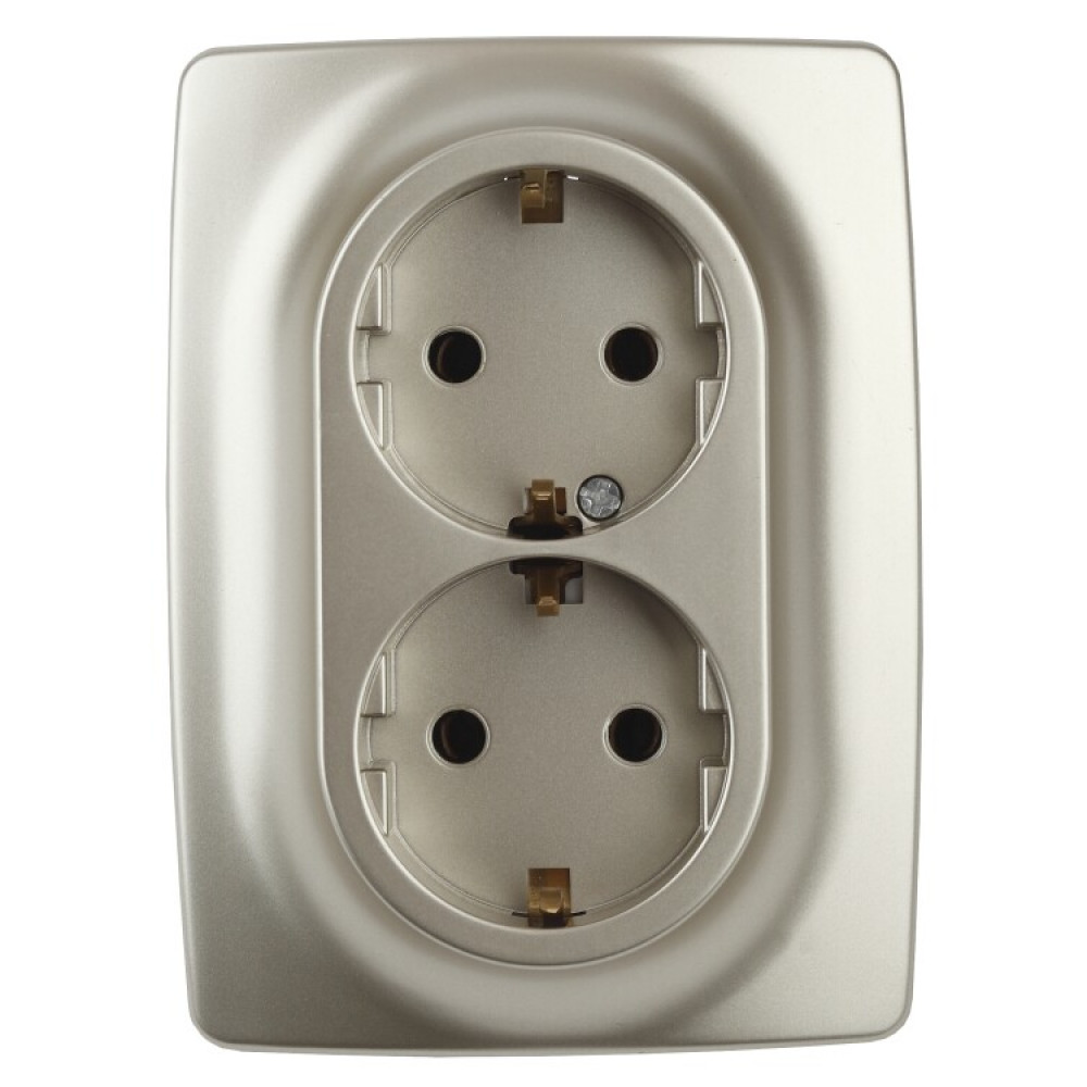 Доставка 12-2108-04 Розетка 2X2P+E Schuko со шторками, 16A-250В, IP20, 2, шампань (10/100/1600) Б0036445