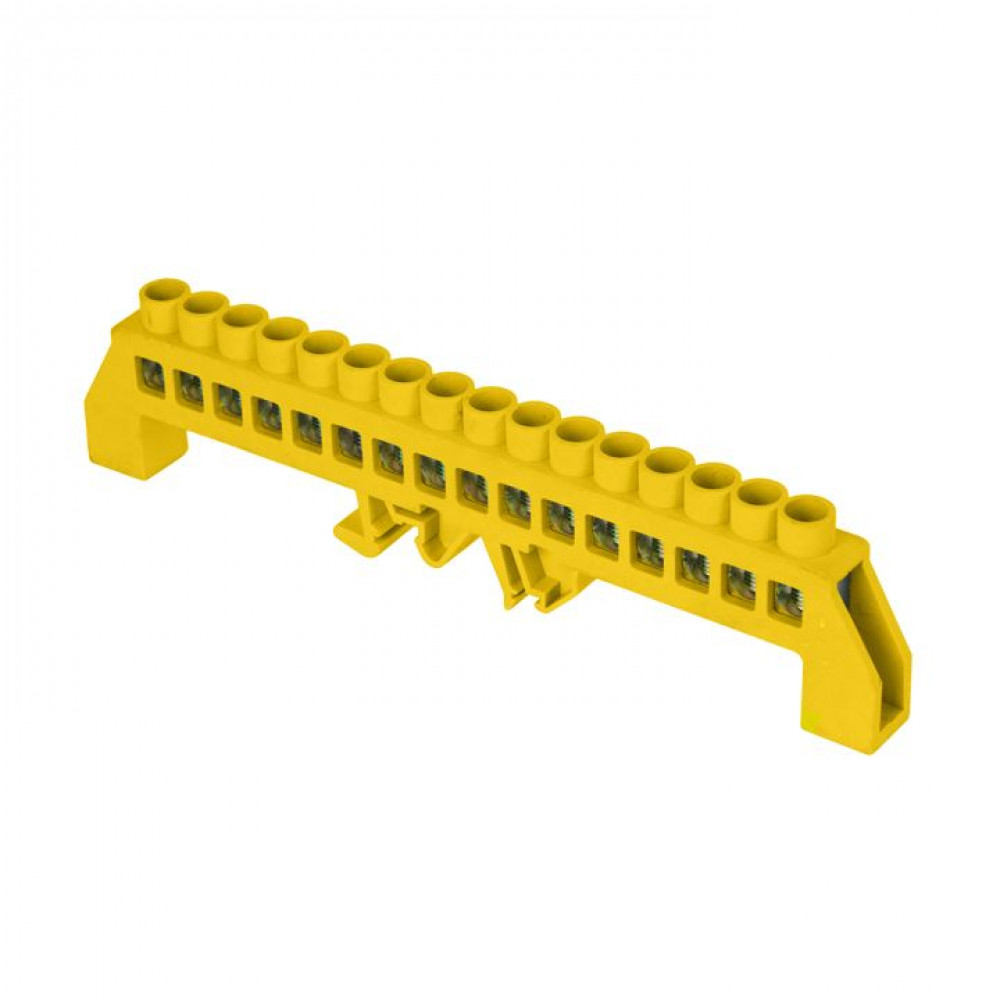 Шина "0" РЕ (8х12мм) 16 отверстий латунь желтый нейлоновый корпус комбинированный PROxima sn0-125-16-dpe, Блок клеммный и нулевая шина