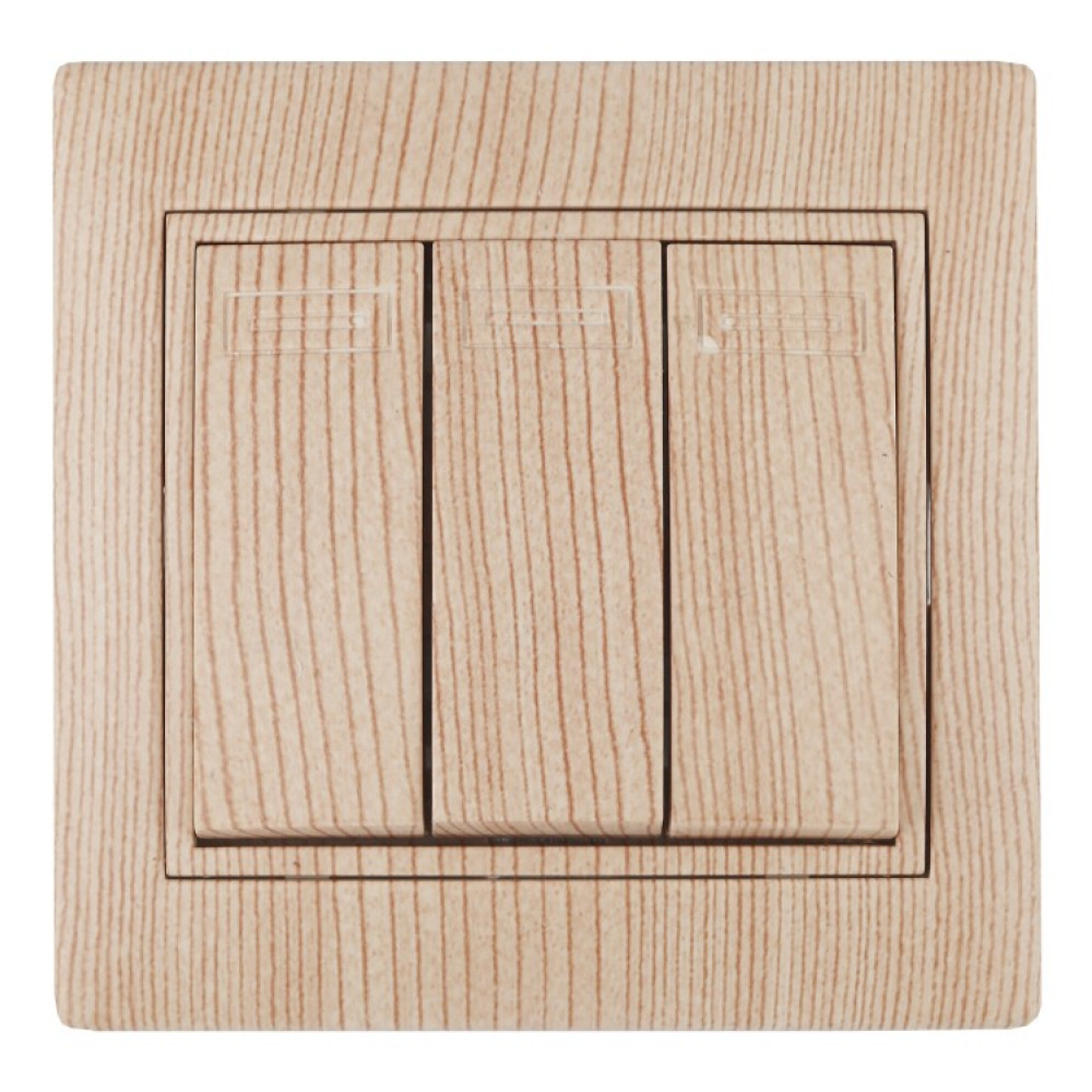 Доставка 1-106-11 Выключатель тройной, 10А-250В, IP20, СУ, Plano, сосна (10/200/2400) Б0030053
