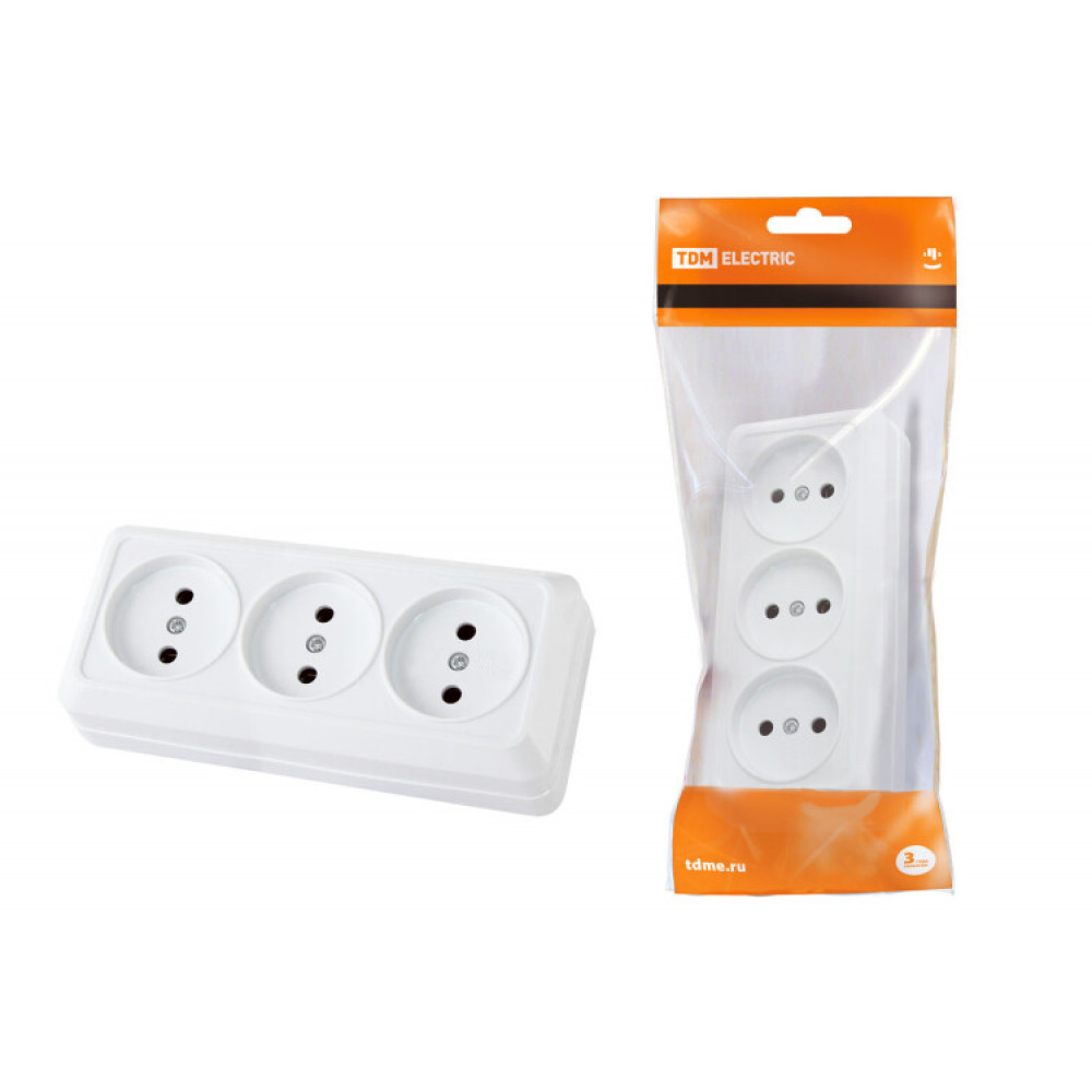 Доставка Розетка 3-х местная горизонтальная 2П открытой установки IP20 10A белая "Ладога" SQ1801-0124